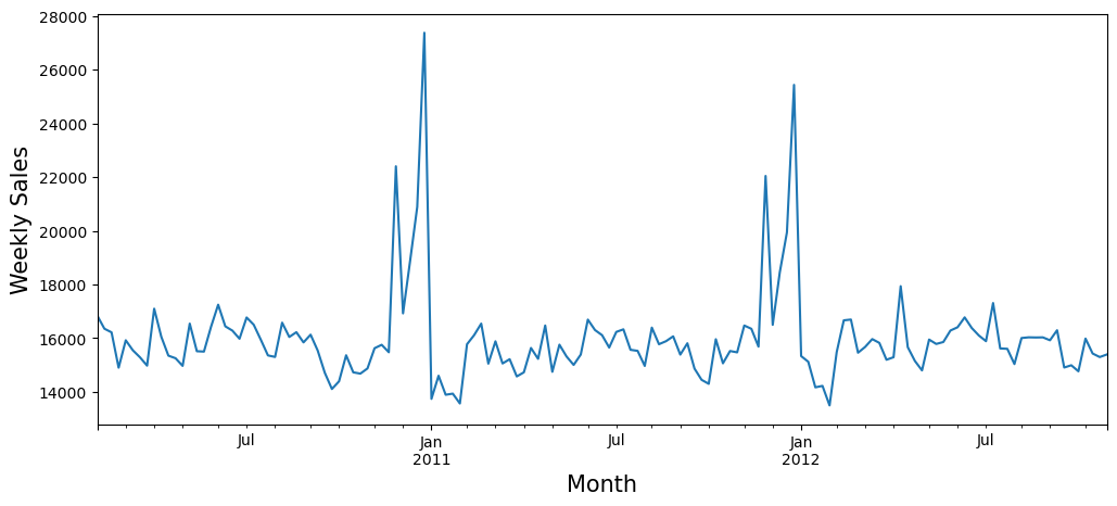 We can see the seasonality in the weekly sales data, which clearly tells its a time series problem.